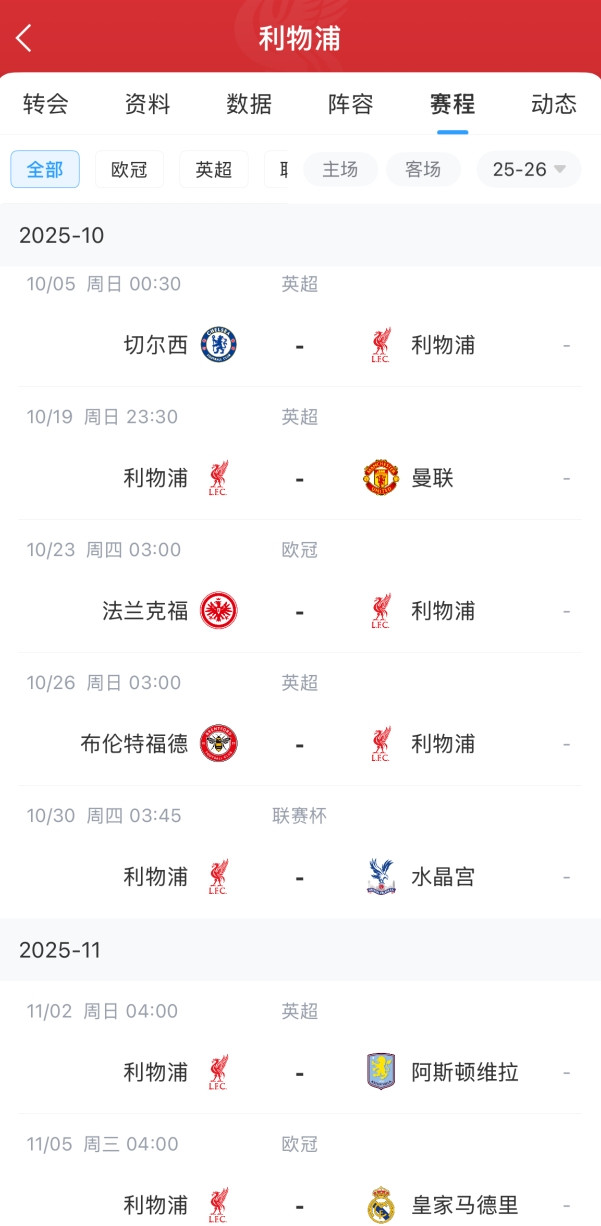 这赛程顶得住❓利物浦2连败,10月将战蓝军曼联法鹰水晶宫