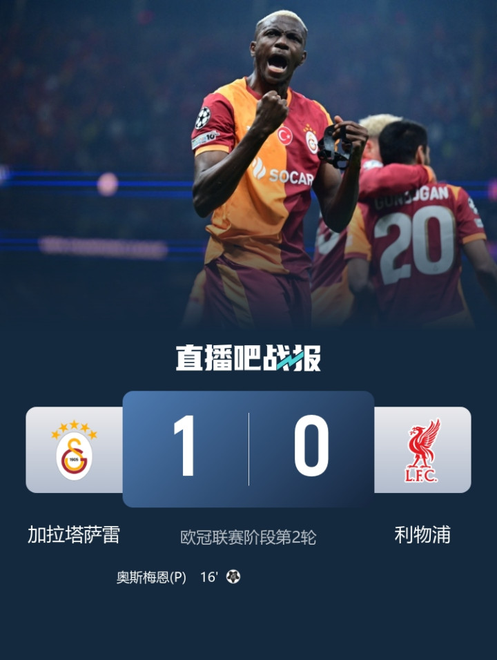 本轮欧冠,利物浦0-1不敌加拉塔萨雷,利物浦在联赛输给水晶宫之后,利物浦10月马上还将有一连串硬仗。