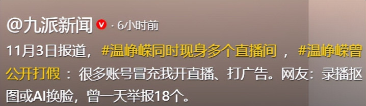 就在这时有眼尖的网友发现,温峥嵘竟然同时“现身”多个不同的直播间。