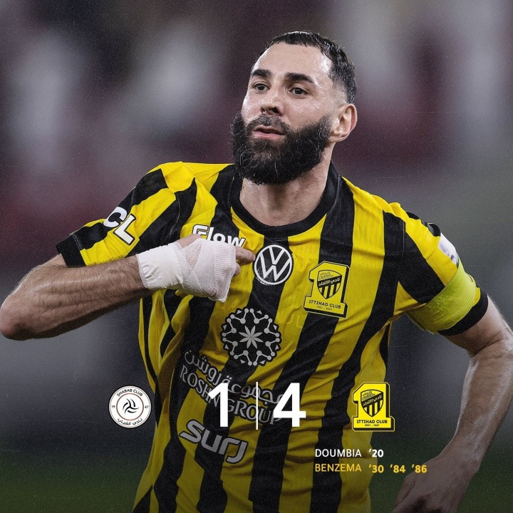 据统计,这是本泽马生涯第17个帽子戏法,也是他加盟吉达联合后的第4次戴帽。
