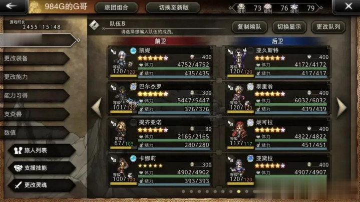 在周年庆典期间,G哥注意到了很多新人玩家的身影,问的问题也是千奇百怪,很多问题在曾经相关玩法刚刚放出时根本就不是问题,但时过境迁之后却成了问题;比如大家最关心的配队问题,目前最容易成型的就是匕首队,凯妮、提齐亚诺、巴尔杰罗这三个角色都是6星形态,这三位在阵容中一站就有戏,再加上一个卡娜莉就可以干掉很多Boss。