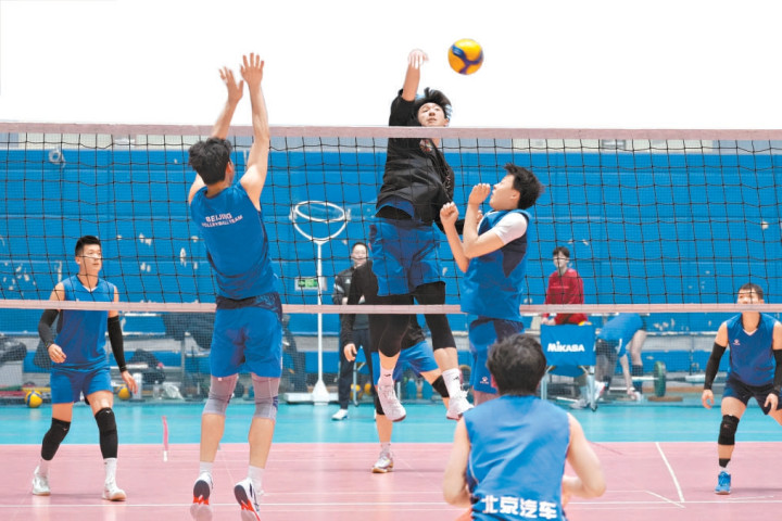 上图为昨天下午,北京男排在进行公开训练课。本报记者刘平摄