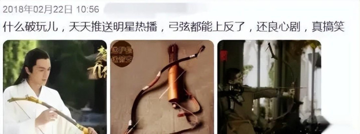 更离谱的是林更新剧中有段 “教别人射箭” 的戏,可他手里的弓弦居然装反了,这剧组未免有些太不尊重观众。