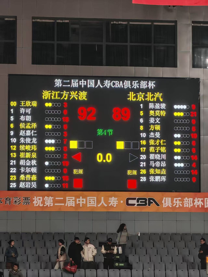 12月8日,在长沙进行的第二届CBA俱乐部杯赛上,北京北汽队以89比92不敌浙江队方兴渡队,结束了本届杯赛的征程。CBA俱乐部杯小组赛阶段落下帷幕,八强球队全部出炉。